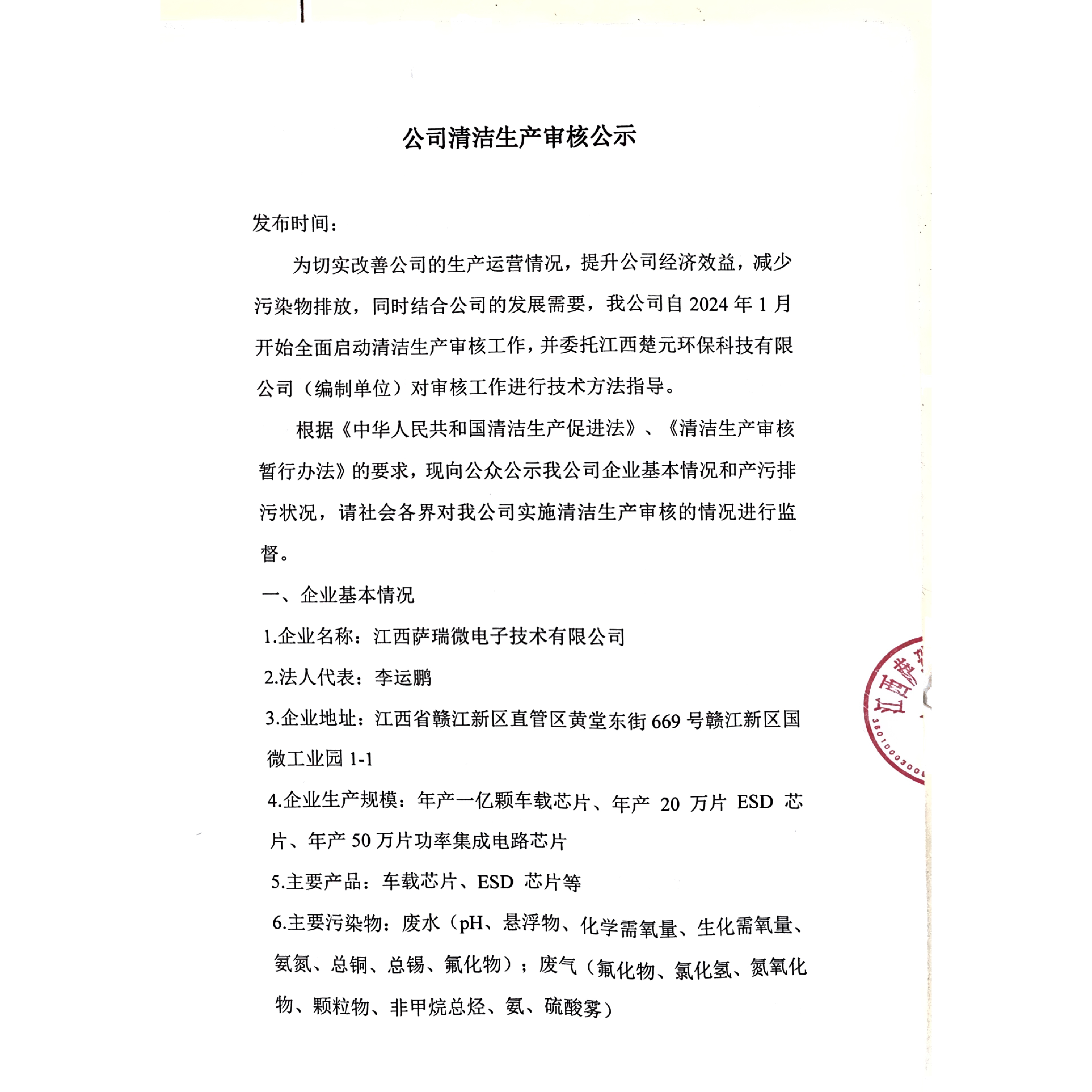 公司清洁生产公示